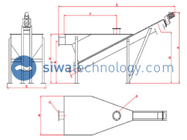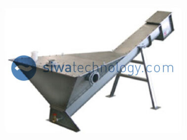 The mixture of water and sand enters the container, where by the action of gravity, the heavier particles decant to the lower area. The screw transports these particles above the level of the liquid, while the separated liquid is extracted from the equipment by overflow.