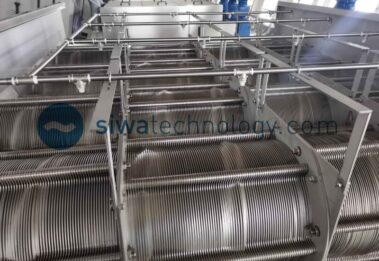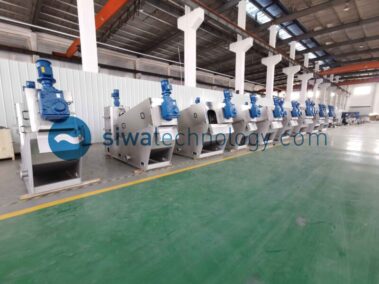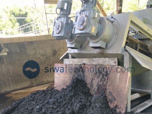 Filter consisting of two types of rings: a fixed ring and a moving ring; and a screw that pushes the filter element and transfers and pressurizes the sludge. The gaps between the rings and the screw pitch are designed to gradually reduce in the direction of the sludge cake outlet, and the internal pressure of the filter element increases due to the volume compression effect, which thickens and dehydrates the sludge.
